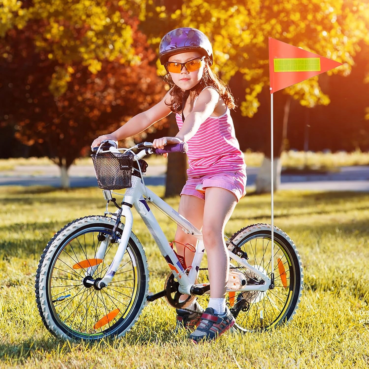 - Прапор велосипеда виготовлений з ПВХ, з барвистим принтом, стійким до розриву, водонепроникного та легкого в чистоті; Світло -жовті світловідбиваючі смуги на прапорі покращують видимість і попереджають, завдяки якій вашій дитині краще видно під час руху. 4