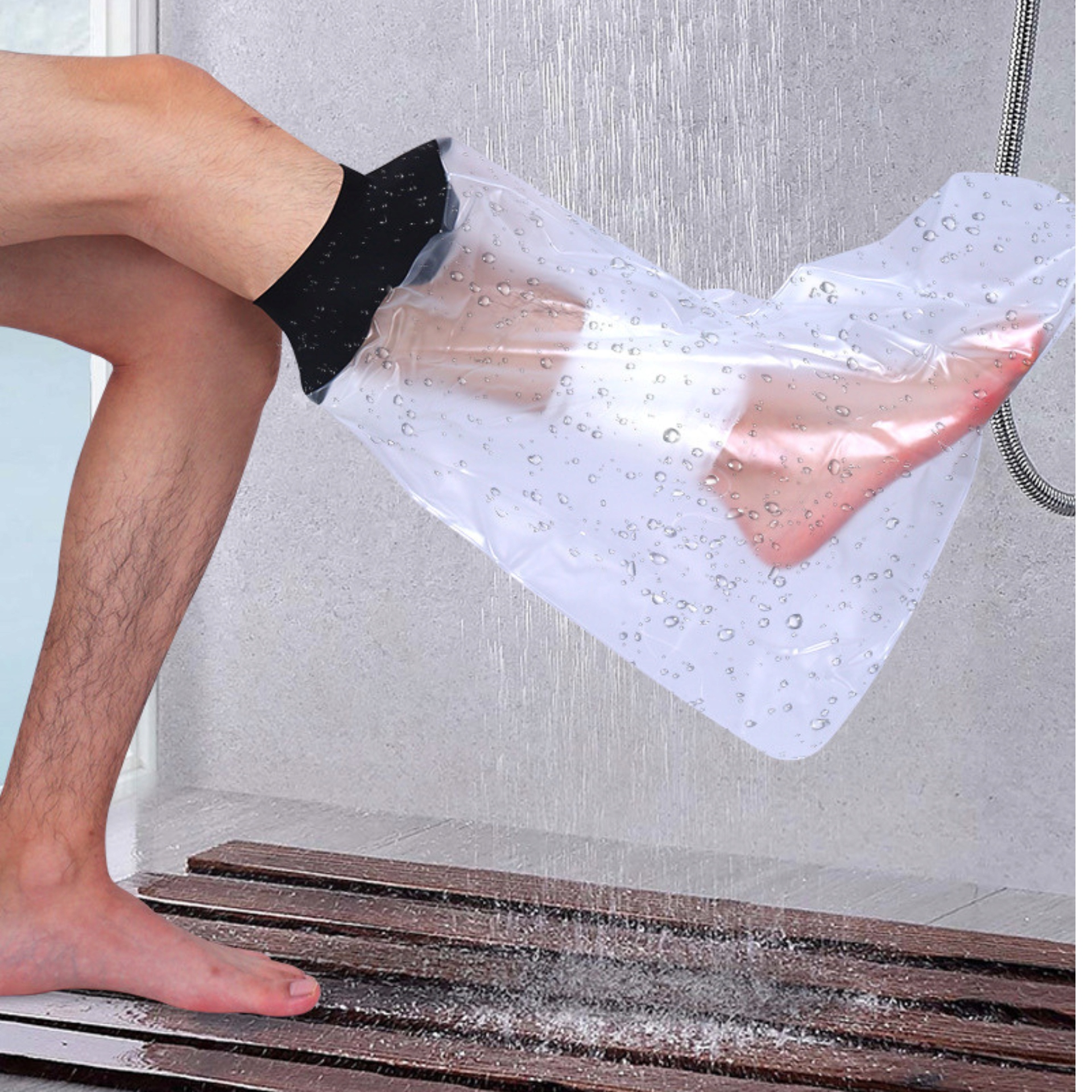Шукаєте ефективний захист, який захистить пов'язку, пластир або рану від води під час прийняття душу? Цей практичний, міцний чохол є незамінним помічником у щоденній гігієні для людей з травмами ніг. Зручний неопреновий комір і гнучкий, прозорий ПВХ рукав створюють щільний захист, завдяки якому ви можете безтурботно користуватися ванною кімнатою.