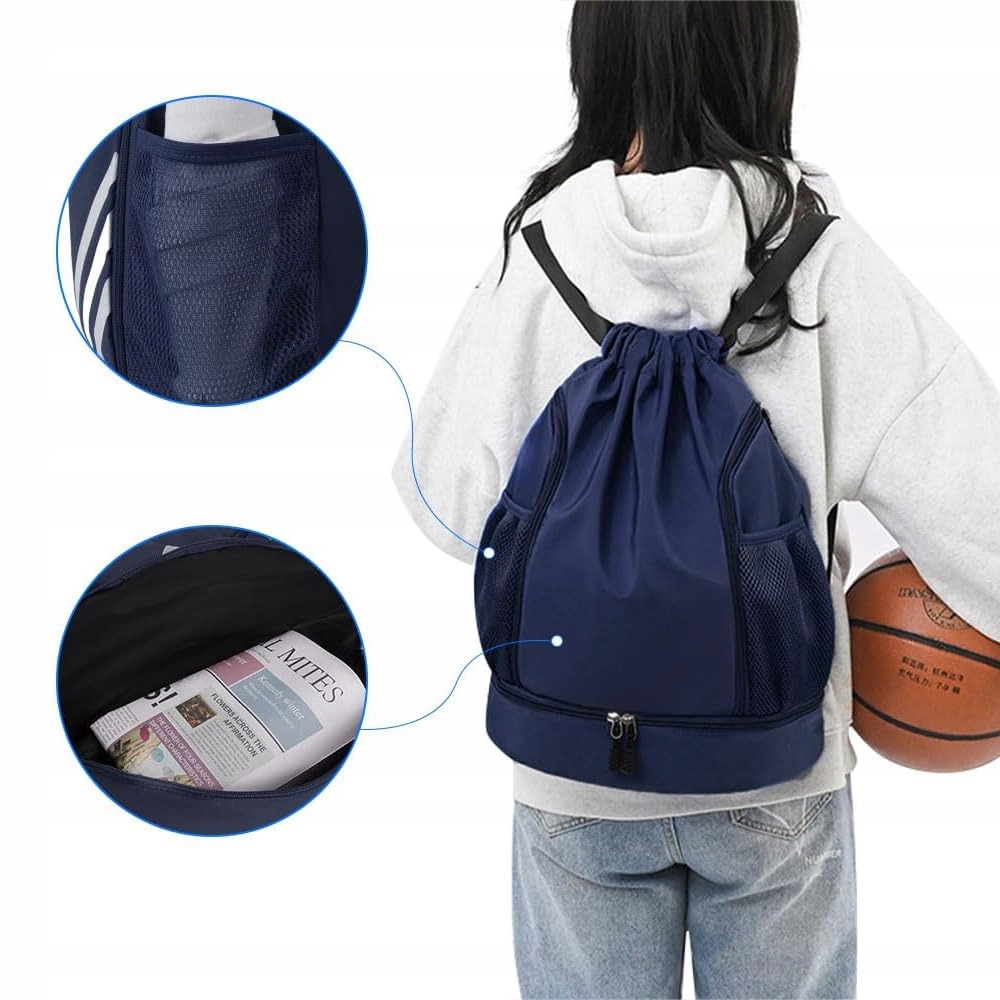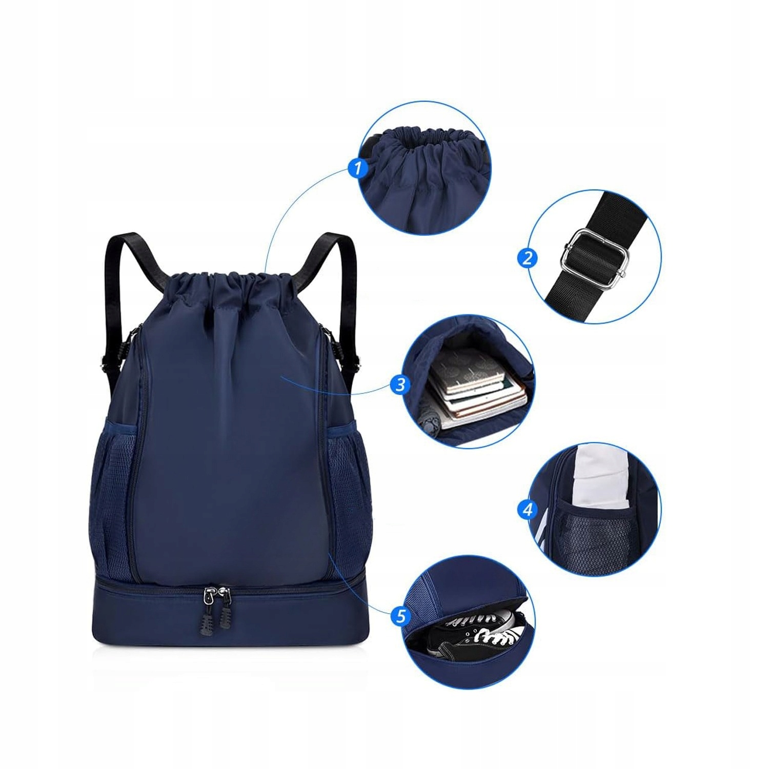 - - розмір рюкзака становить 16,9 "*13,3", що дозволяє зберігати більшість спортивних та повсякденних предметів, таких як баскетбол, спортивний одяг, обладнання для плавання, спортивні рушники, взуття тощо. Дукерки та туалетні приналежності, дно - це незалежне взуттєве відсік, мотузковий мішок також має додаткову внутрішню кишеню на блискавці. 4