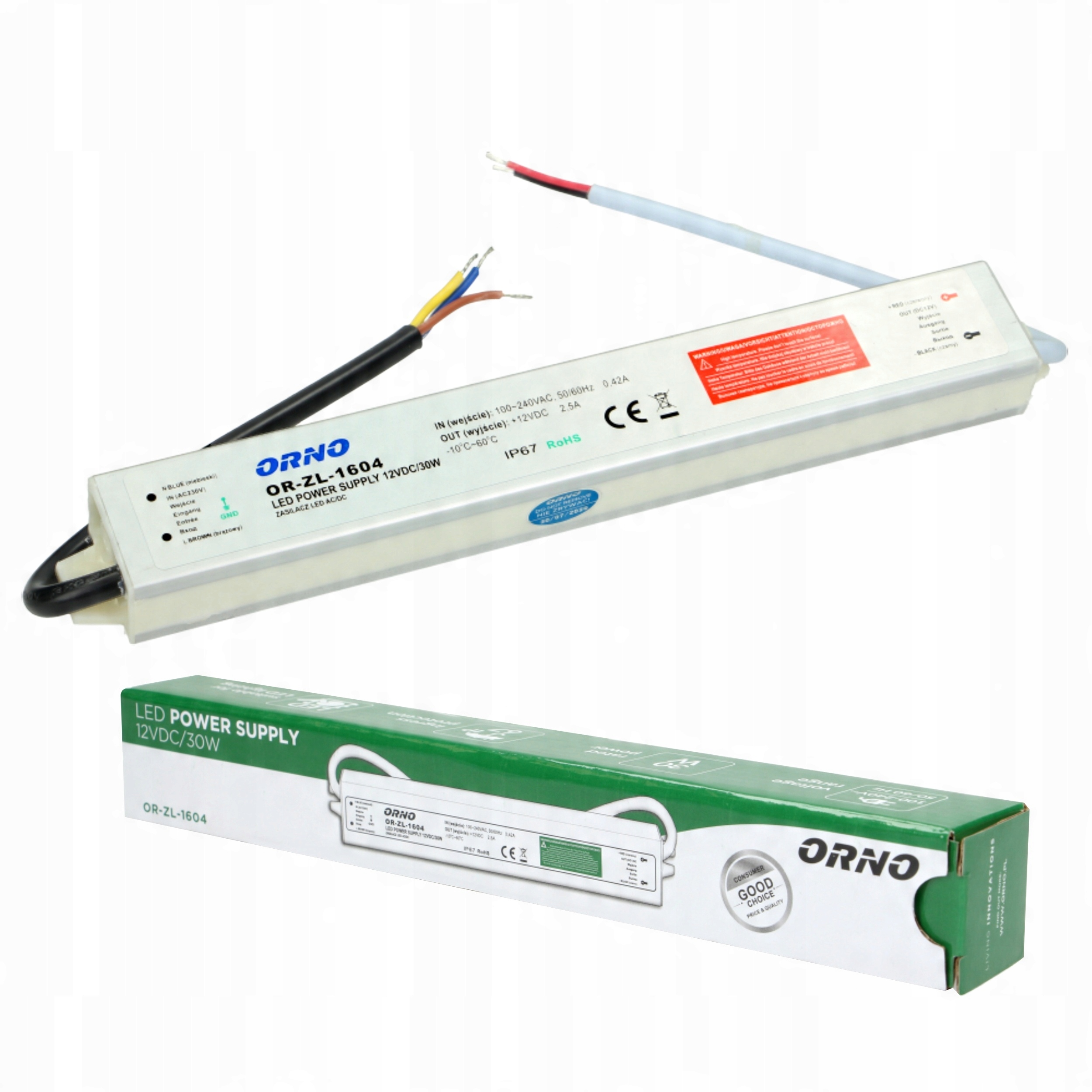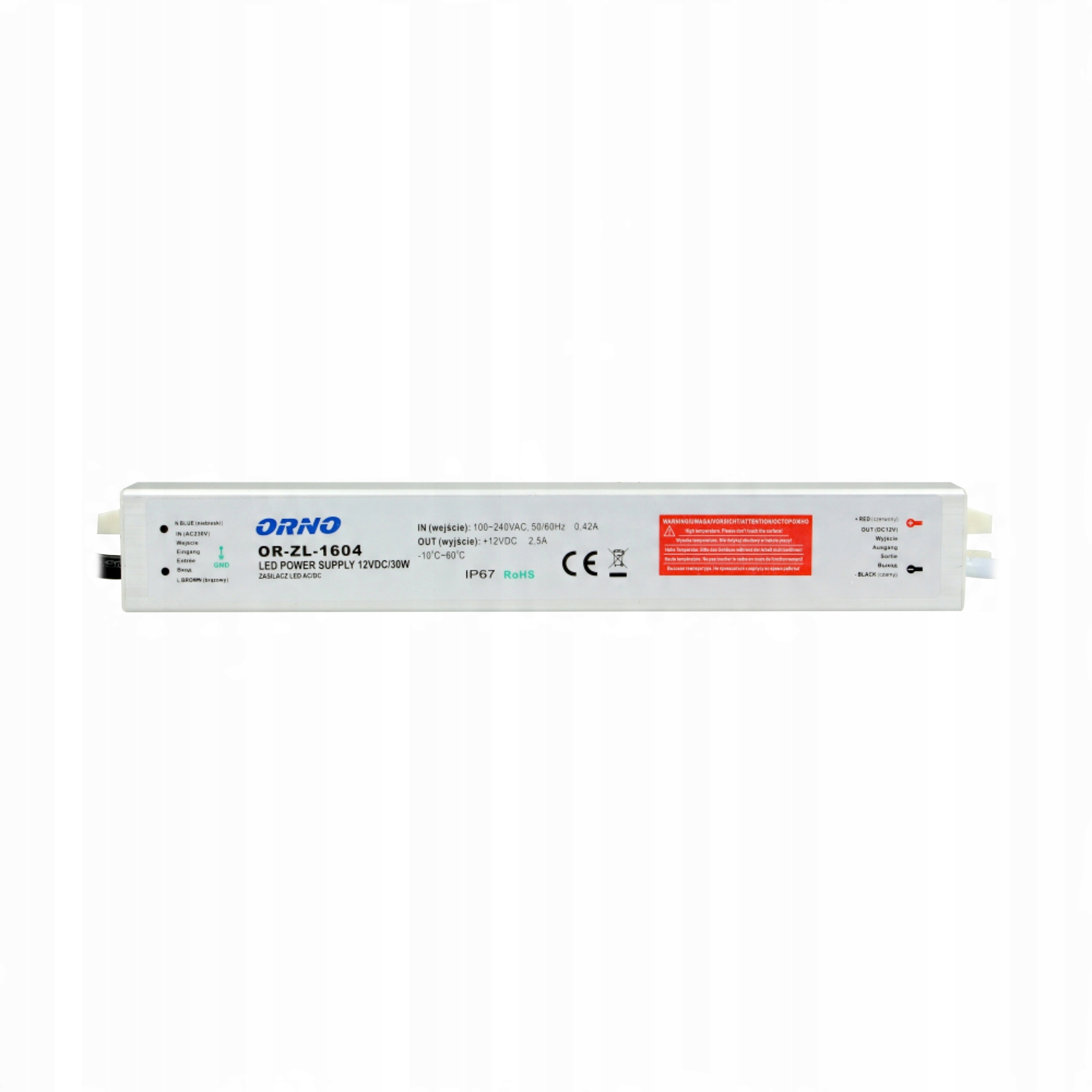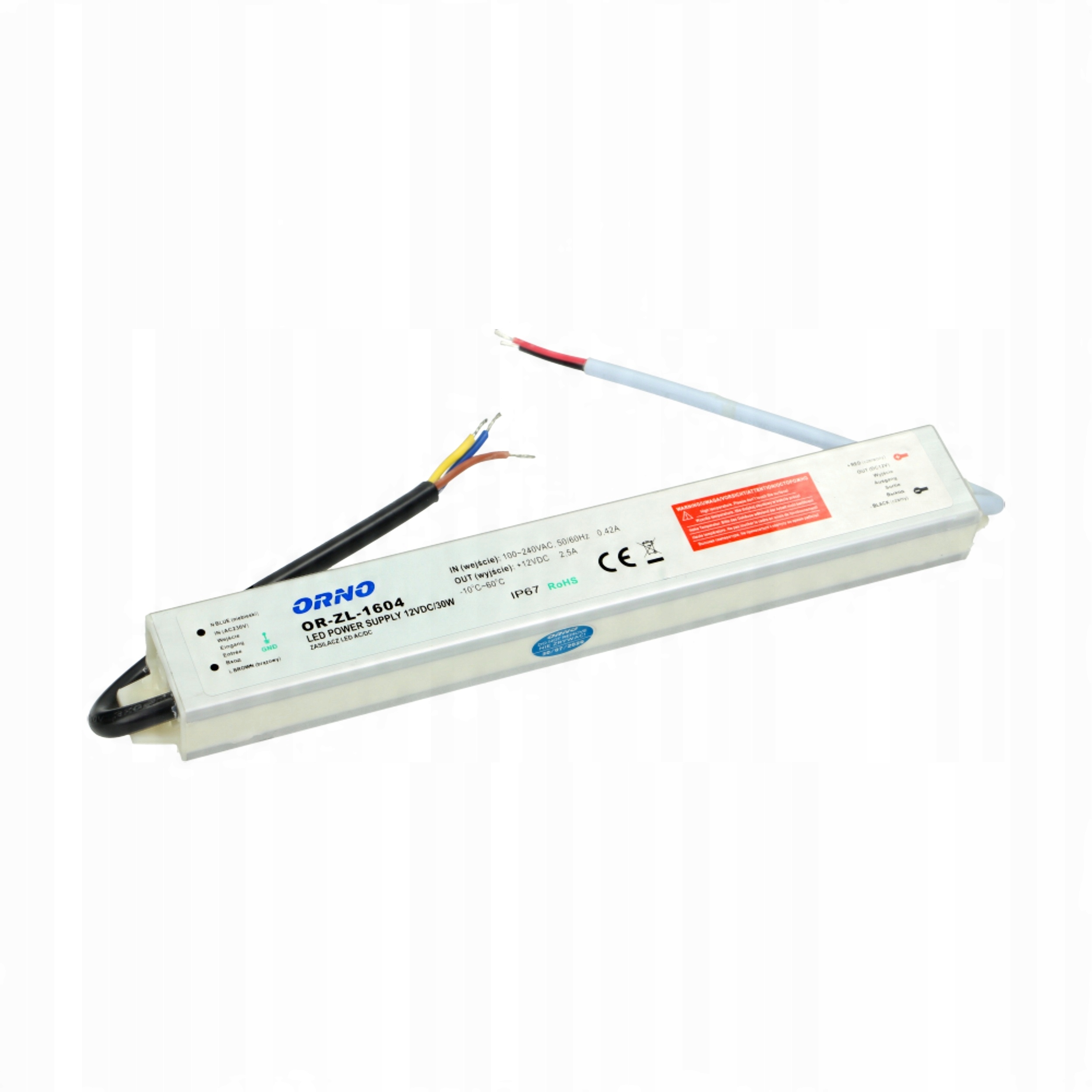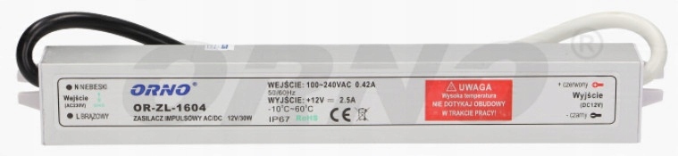 джерела живлення для систем світлодіодного освітлення, включаючи окремі діоди, рейки, світлодіодні смужки, лампочки, модулі, змії або неонові світильники, оснащені ручками, які дозволяють прикріпити до стіни або стелі. Він характеризується водонепроникним (IP67), щільним металевим корпусом, що дозволяє використовувати в умовах з підвищеною вологості, наприклад поза будівлею. Постійна вихідна напруга незалежно від допустимого навантаження, захисту: короткий заклад, перевантаження, напруга.