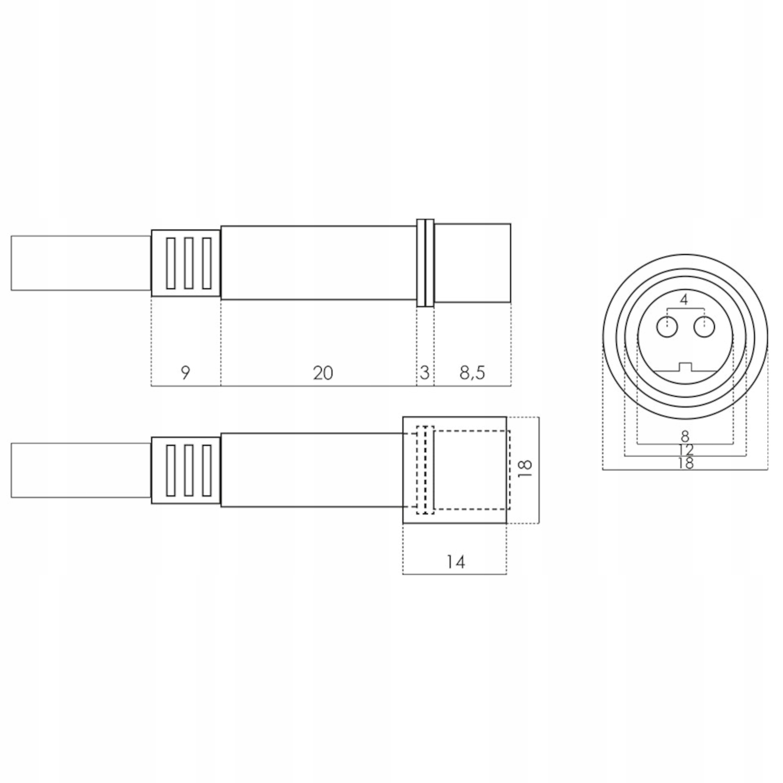 Водонепроникний світлодіодний роз'єм 40 см 2-контактний FAT