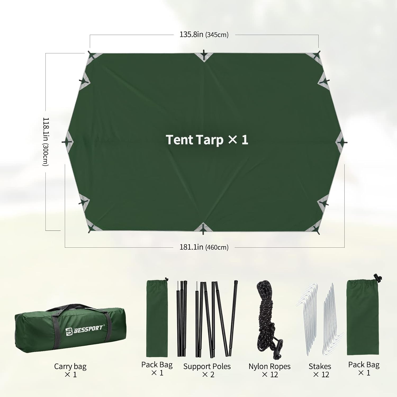 - Легкі та портативні - розміри брезентового намету Bessport складають 3 x 4,6 м, розміри упаковки: 44 x 18 x 15 см, вага лише 3,5 кг, підходить для 6-8 осіб, легко переносити , дуже підходить для сімейного відпочинку та активного відпочинку.