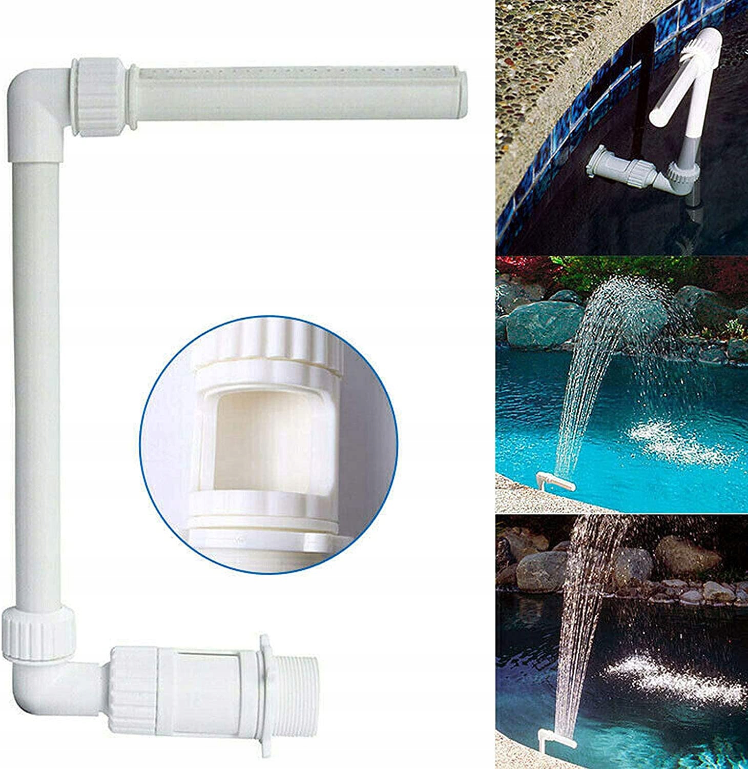 -Просте встановлення: вимкніть насос басейну, послабте та зніміть з’єднувач зворотної труби, а потім установіть фонтан на Зворотний отвір у ставок.