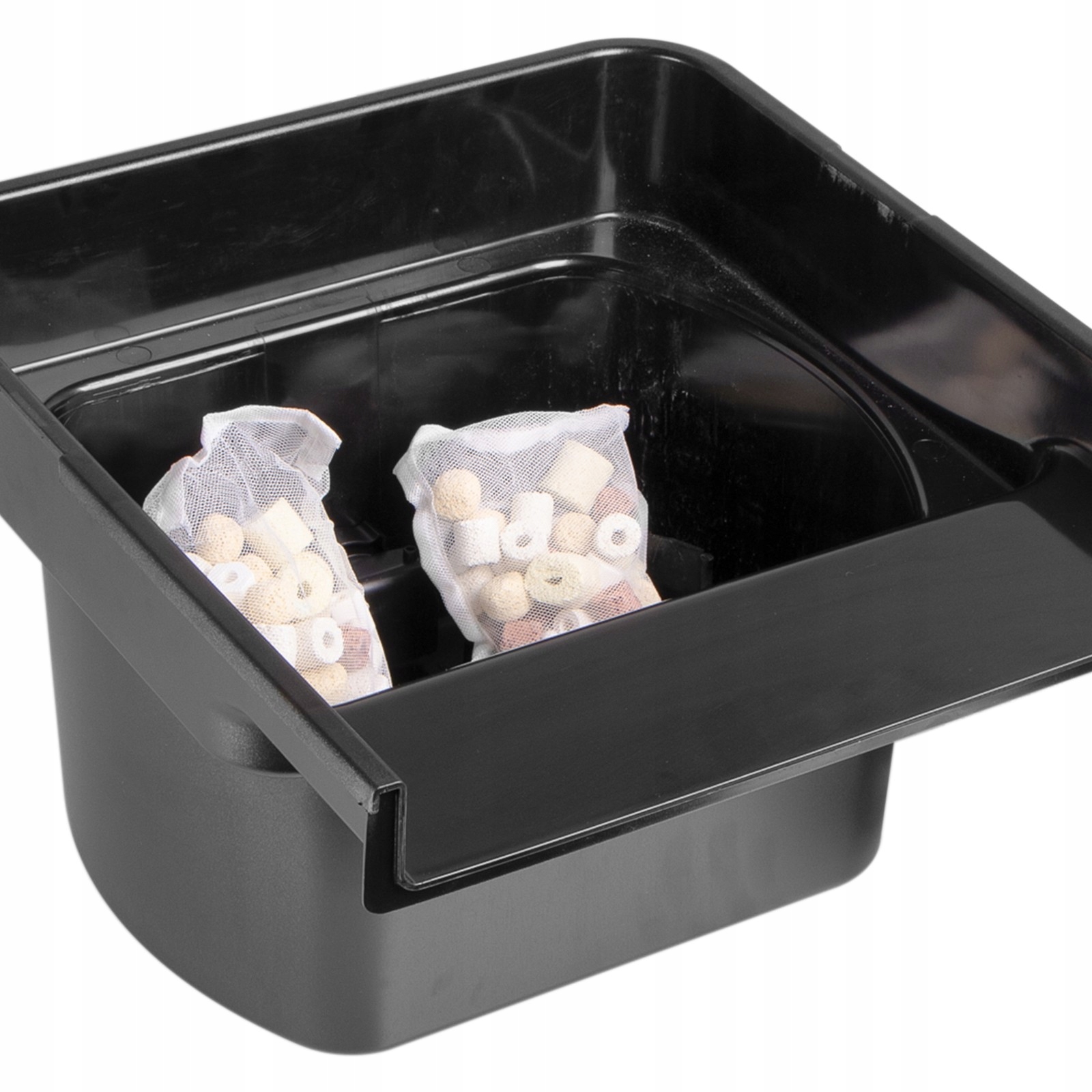 Наш носик був обладнаний двома горщиками для водної рослинності, наповнених губкою. Досить покласти коріння та стебла рослин, які люблять життя у воді, , наприклад: Tatarak (Acorus Calamus) Вода Палка (Typha latifolia) żabieniec (Alisma plantago-aquatica) створити природний, екологічний фільтр і додайте свій ставок до унікального чарівності! його середина, відповідно до розміру ваших живців. Встановіть напрямок потоку води. Завдяки цьому ви створюєте вихровий ефект, який максимально збільшує ефективність механічної, хімічної та біологічної фільтрації. Більше того, ви можете підключити два змій з аератора до дифузора, щоб додатково збагатити воду киснем. Краща аерація у фільтрувальній камері підтримує розвиток корисних бактерій, які відповідають за природну, біологічну фільтрацію води, забезпечуючи її чистоту та баланс екосистеми водного ставу.