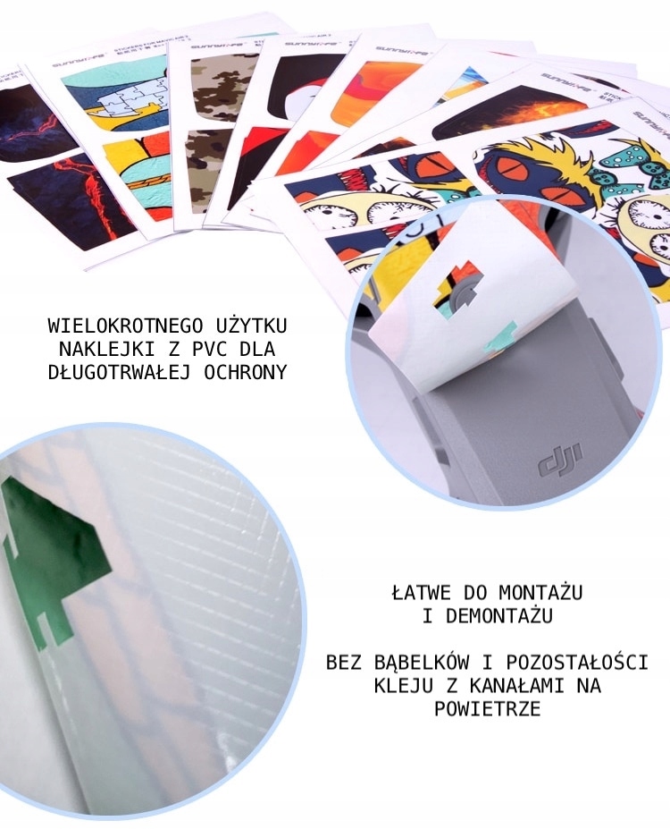 Дякуємо до відповідної структури матеріалу наклейки наносяться без бульбашок повітря та без залишків після розбирання на поверхню дрона та контролера.