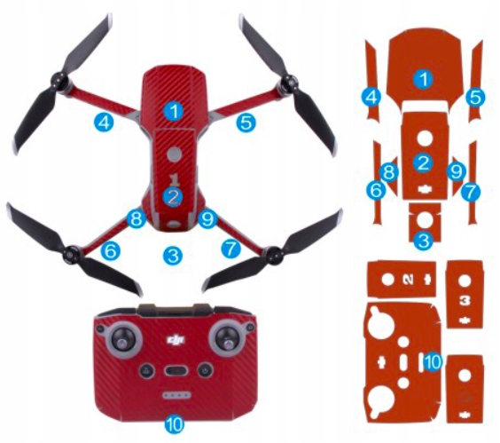 1x набір із 10 наклейок (для дрона/контролера/батарей)