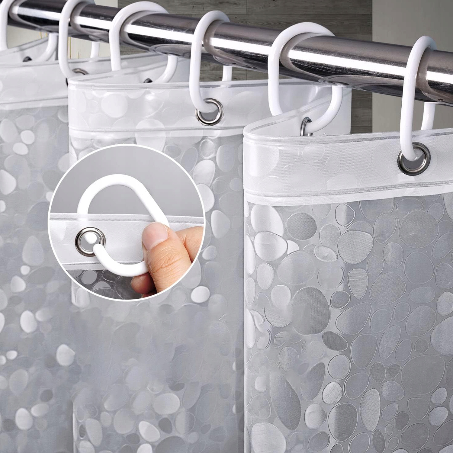 🛁Матеріал: 3D напівпрозора завіса для душу виготовлена з EVAматеріалу, ПВХ і BPA. Високоякісний матеріал EVA забезпечує анти-пліснявові та антибактеріальні властивості, ефективно запобігаючи розвитку цвілі та бактерій. Напівпрозорий 3D-малюнок камінчиків добре захищає ваше приватне життя.