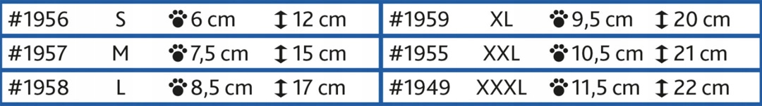 Якщо лапа вашого улюбленця має два розміри або має пов’язку, використовуйте наступний більший розмір. Завдяки регульованим застібкам ви зможете ідеально підігнати їх до лапи.