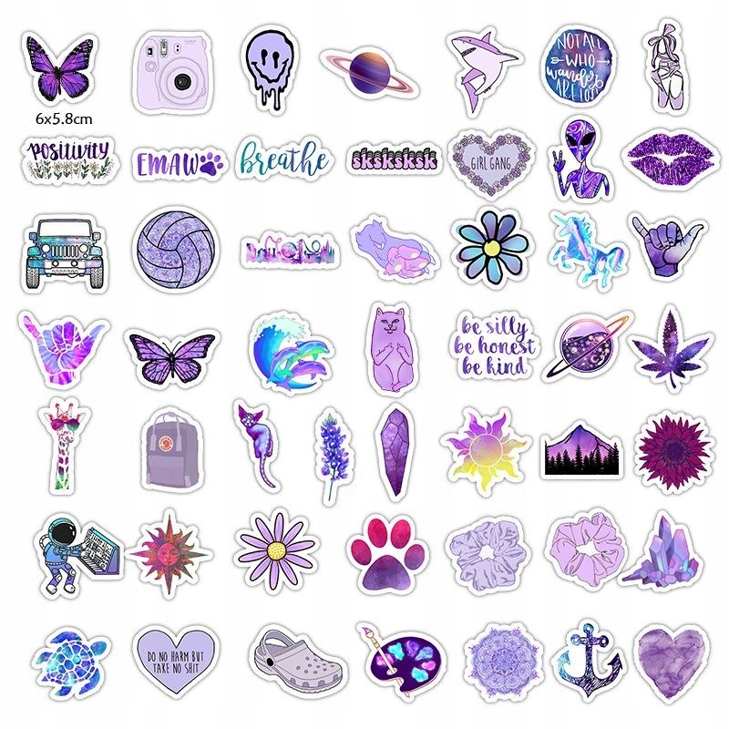 Підсумовуючи, WATERPROOF STICKERS MIX PURPLE SET OF 50 PCS – це унікальний продукт, який характеризується довговічністю, легкістю знімання та відсутністю повторів, що дозволяє креативно декорувати та персоналізувати різні предмети.