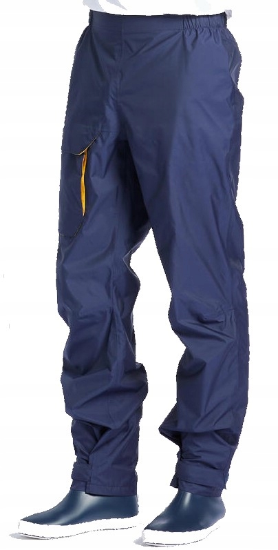 Вітрильні штани та верхні протектори призначені для чоловіків, які займаються вітрильним спортом або іншими фізичними навантаженнями, щоб захистити ноги від дощу, бризок і вітру. Гідрофобні, міцні штани з чудовим співвідношенням ціна/якість, ідеальні для часового плавання в дощову та вітряну погоду, з герметичними швами та водонепроникним покриттям 5000 мм за шкалою ШМЕРБЕР (випробування розбризкуванням до 100 літрів води/м²/год протягом 3 годин - стандарт ISO 811). Вага штанів: 295 г у розмірі XL.