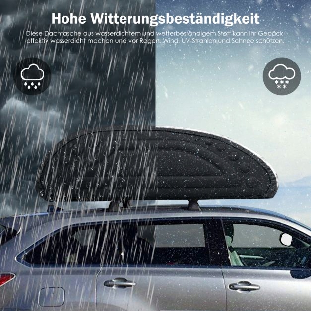 Великий простір для зберігання - місткість 400 літрів забезпечує великий простір для зберігання. Сумка на даху ідеально підходить для транспортування спортивного та туристичного спорядження та багажу. , стабільність і довговічність і стійкість до погодних умов. Водонепроникний дизайн також включає 2 блискавки.