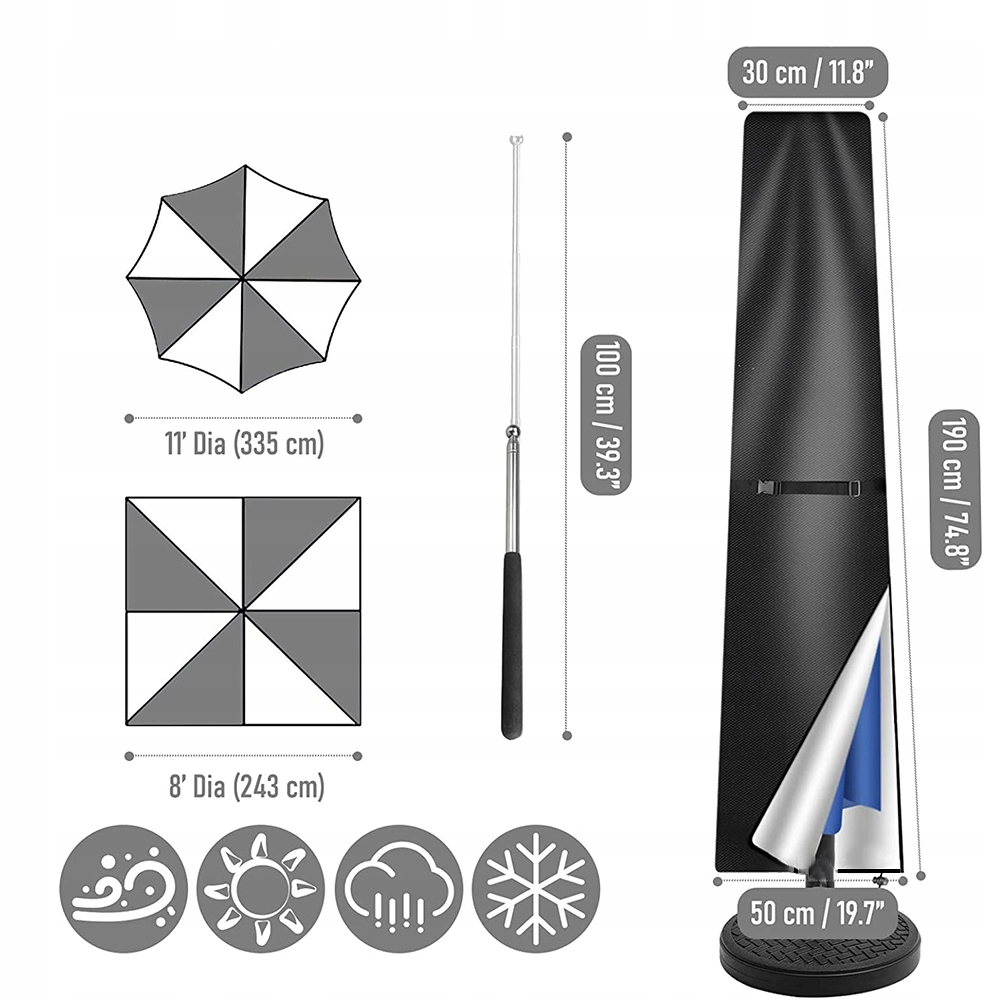 - ⛱ - Кожен чохол на парасольку оснащений телескопічною штангою, яка дозволяє зручно та легко відкривати та закривати чохол.