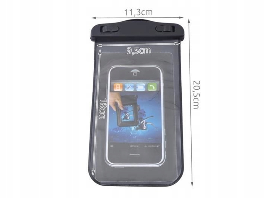 Практичний водонепроникний чохол для телефону ідеально захистить ваш смартфон від води та вологи, напр. під час бігу або їзди на велосипеді під дощем. Ідеально підходить для басейну, вітрильного спорту, плавання та пляжу. Призначений для смартфонів з діагоналлю екрана до 5,5 дюймів.