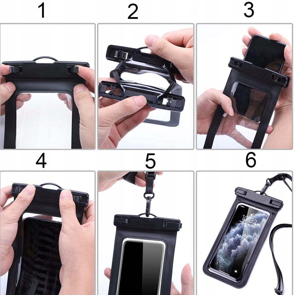 1. Цей водонепроникний чохол не призначений для мобільних телефонів із товстим корпусом (наприклад, Otter box). Зніміть ці футляри, перш ніж покласти телефон у сумку.