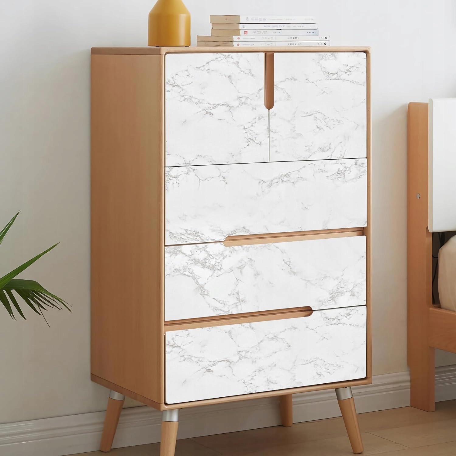 Просте встановлення: шпон робить не потребує додаткового клею, що робить монтаж простим і швидким. Просто зніміть захисний шар і наклейте шпалери на вибрану поверхню.