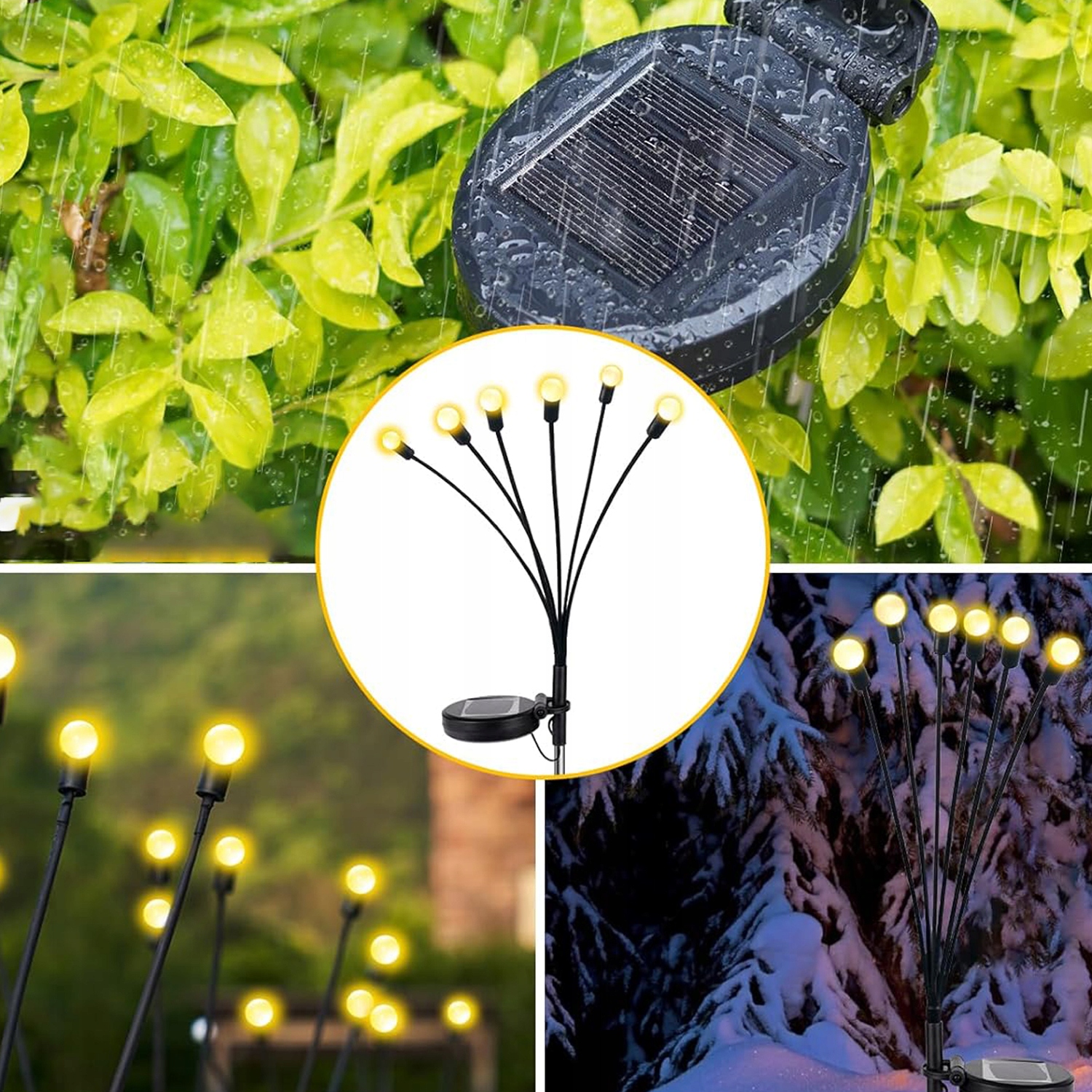 💡Ці сонячні ліхтарі Firefly мають коливальні вогні, які тріпотять на вітрі. Тому, коли дме вітер і коливаються вогні, ви будете вражені, наскільки вони гарні. особливо вночі, його м’які та гнучкі гілки змусять вогні колихати на вітрі, а його танцююча краса створить гарний настрій.
