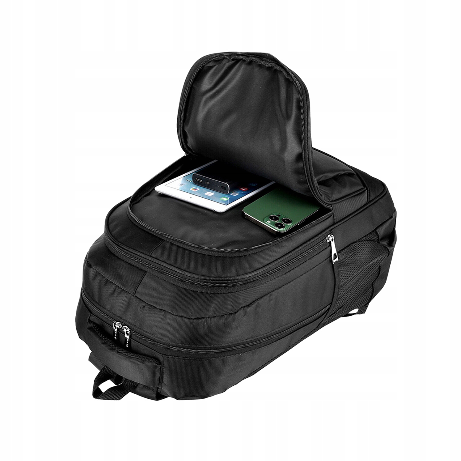Основне відділення вміщує ноутбуки з діагоналлю екрану 17,3 дюйма та менше, має 3 основних відділення, 1 передню сумку, багатошарову середні бічні кишені та 2 бічні сітчасті кишені для парасольки або пляшки з водою.
