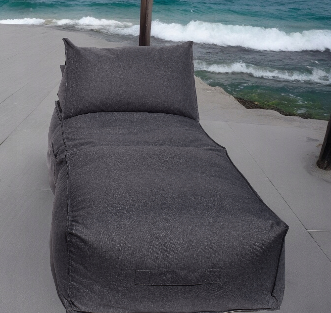 Шезлонг виготовлено з поліефірної тканини лляного типу з водонепроникними властивостями. Всередині гранульований пінополістирол. Зшиваємо все міцними подвійними стібками. Завдяки такому пошиттю ми можемо бути впевнені, що крісло прослужить довго, а вставка не розсиплеться. Його естетичні властивості та міцна конструкція завдяки продуманому дизайну та використанню високоякісних матеріалів. матеріали, подвійне кріплення та подвійні шви.