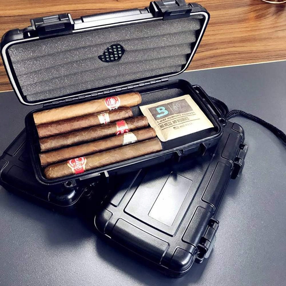 Портативний хьюмідор для сигар, IP68, водонепроникний з губчастим шаром, пилонепроникний і ударостійкий, портсигар для транспортування під час подорожі (5 сигар), Caddy box, чорний