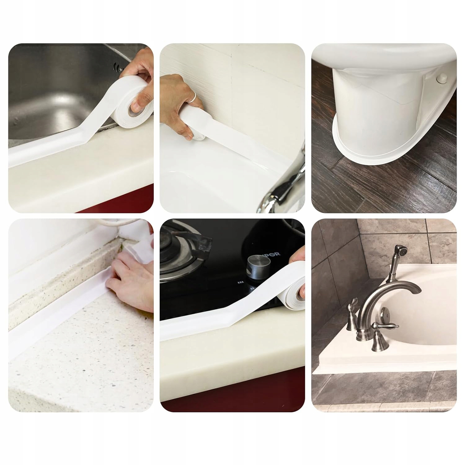✨✨【Широка Застосування】: Самоклеюча ущільнювальна стрічка для ванн широко використовується для герметизації швів газової плити, раковини, раковини, ванни та стін. Він може запобігти потемнінню та підтримувати його в чистоті та порядку.