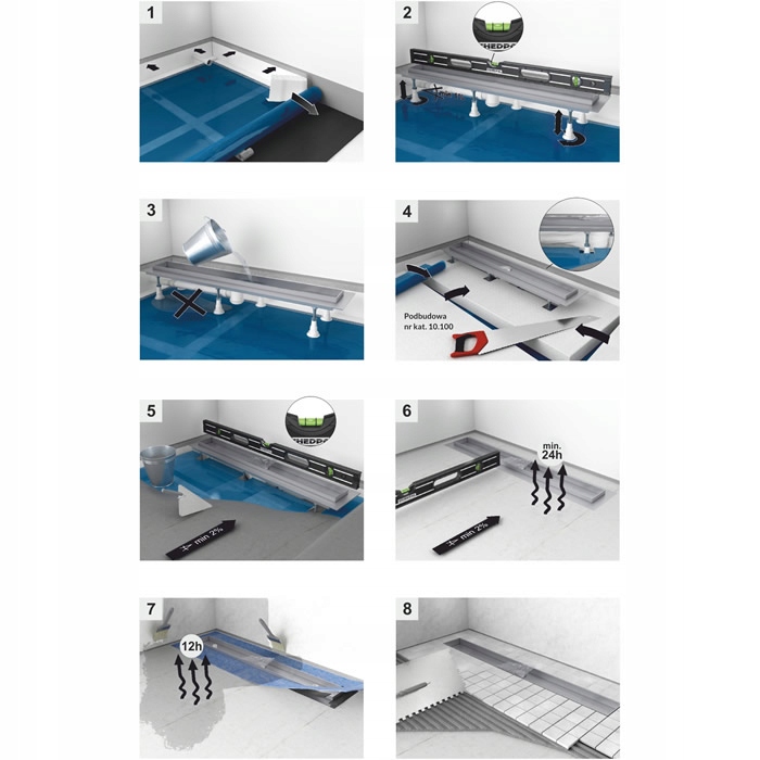 - кришка: для монтажу плиткою, версія BASE (ширина 8 см)
