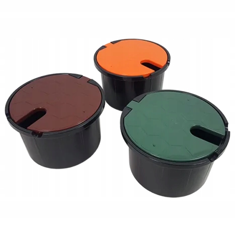 Водозабірний колодязь із клапаном 3/4" доступний у конфігурації із зеленою кришкою (версія, яку легко приховати - ПРИХОВАТИ), з помаранчевою кришкою (версія, яку легко знайти - ЗНАЙТИ) та коричневою кришкою (версія сховатися в кору - ДЕРЕВО).