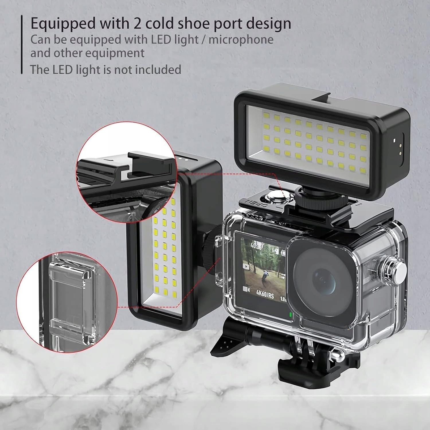✅Корпус оснащено набором адаптерів для швидкого встановлення та подвійними холодними кріпленнями, які забезпечують повну гнучкість у регулюванні кутів, дозволяючи повертатися на 360°. Незалежно від того, підключаєте ви освітлення, смартфони чи інші аксесуари, пристрій підтримує кріплення на штативі для плавного переходу між наземними та підводними пригодами.