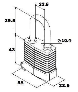 Навісний замок, призначений для захисту власності. Корпус виготовлений із загартованої сталі та має кришку, що робить його стійким до складних погодних умов. Замок закривається на засувку. Штифт виготовлений із загартованої сталі. Характерною особливістю цього продукту є його надзвичайна стійкість до пилу, забруднення та несприятливих умов.