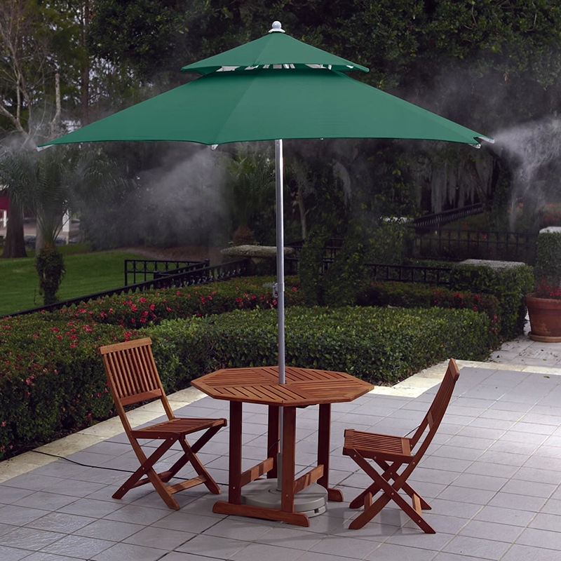 Кут положення насадки можна регулювати відповідно до ваших потреб. Встановлення розпилювача туману не потребує дренажу, оскільки вода випаровується спонтанно, не спричиняючи жодних пошкоджень або вологих плям. Все це можна під’єднати до звичайного садового шланга за допомогою швидкого з’єднувача, який входить у комплект.