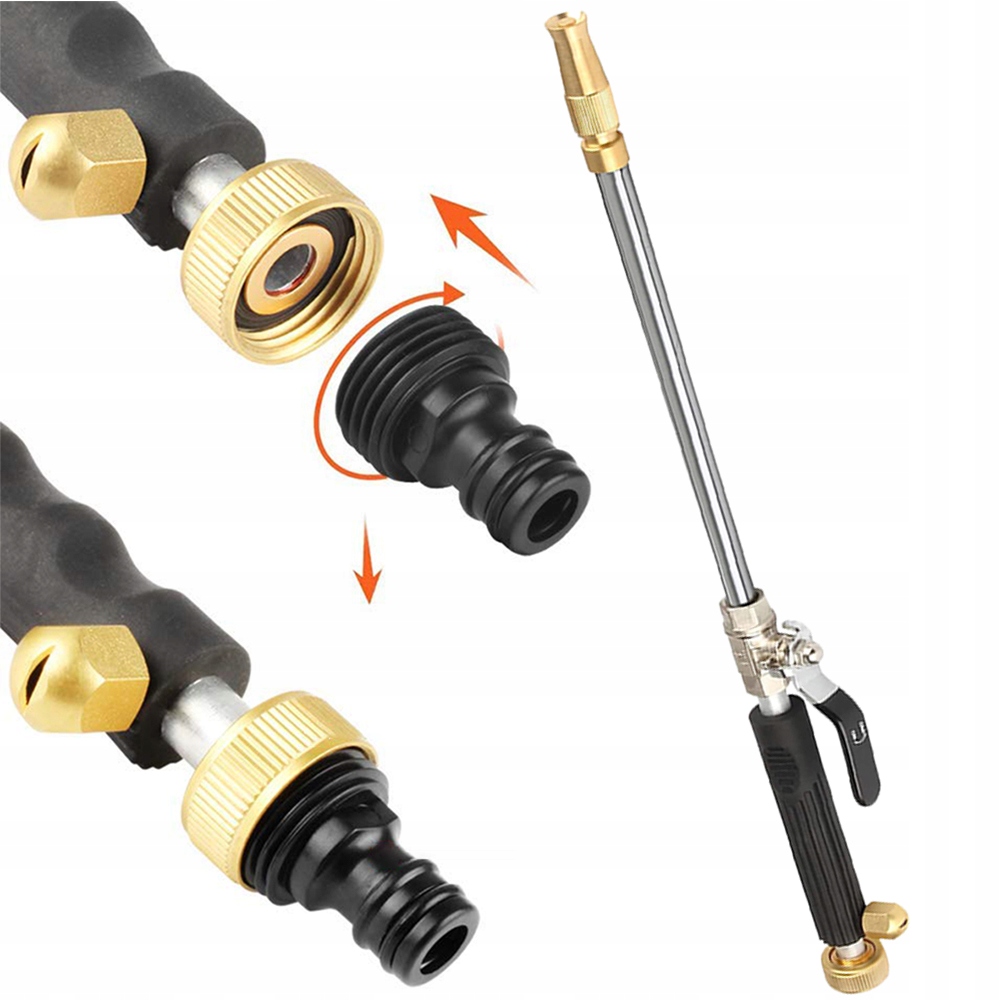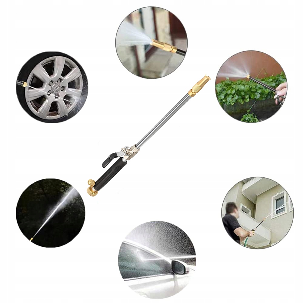 Струмін високого тиску складається з протиковзкої рукоятки TPR і міцного алюмінієвого сплаву, який є міцним, герметичним, стійким до тиску та нелегким для згинання. Насадка з чистої міді, стійка до іржі та корозії.