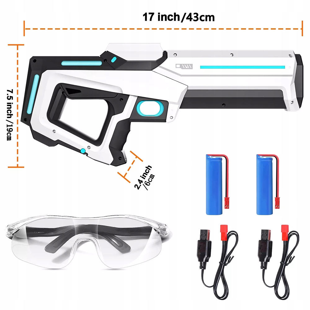 🔫 Виготовлений із міцних і міцних матеріалів, таких як ABS, харчовий поліпропілен та ПВХ, водяний пістолет має гладку поверхню, його можна багаторазово використовувати та швидко заряджати через USB-кабель, що входить у комплект, перед боєм.