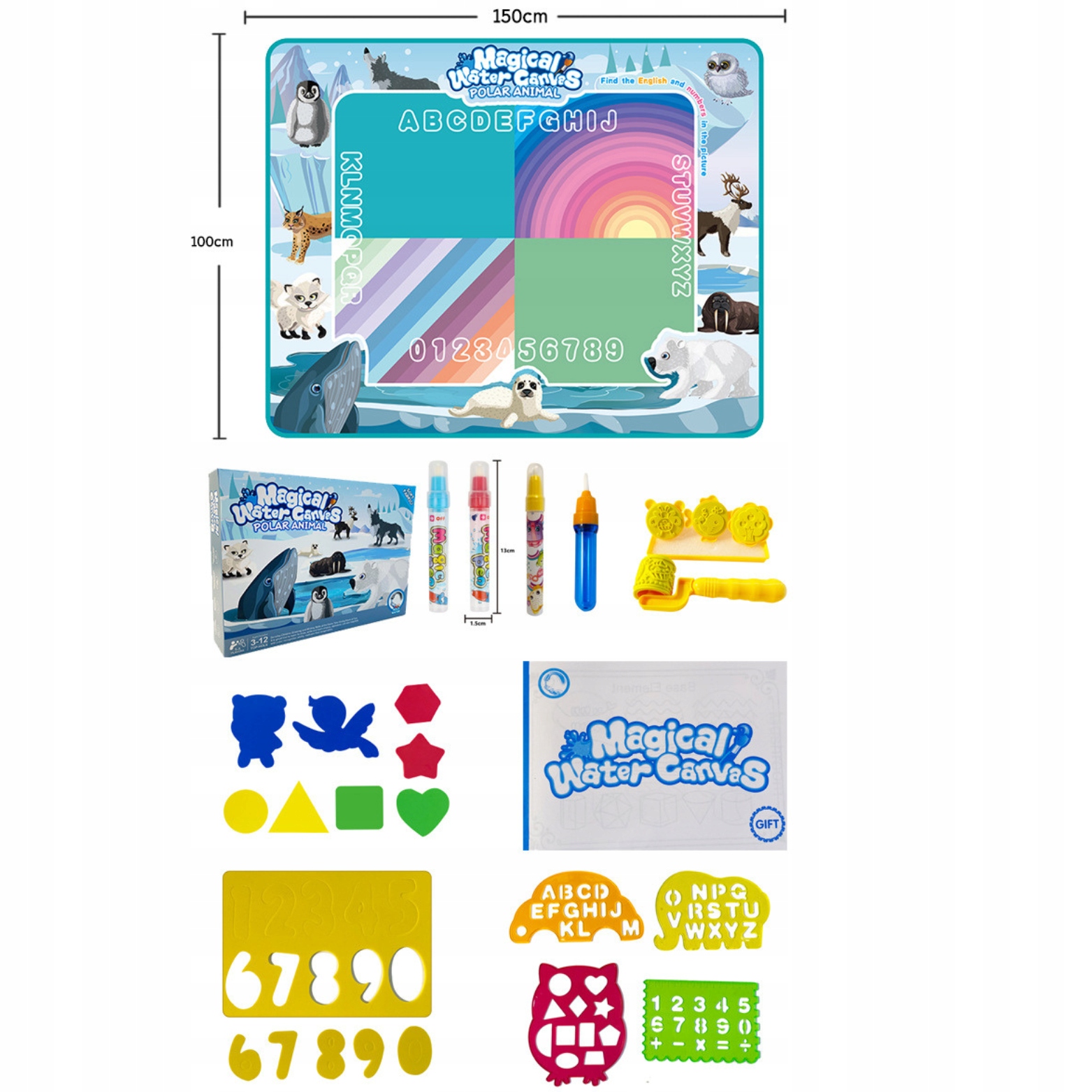 Водний килимок із зображенням полярних тваринце захоплююча іграшка, яка дозволяє дітям створювати красиві малюнки без використання фарб чи крейди. Килимок для малювання Водночас він зберігає все навколо вас чистим і охайним. Цей інноваційний килимок робить фарбування не тільки приємним, але такожбезпечним і гігієнічним.
