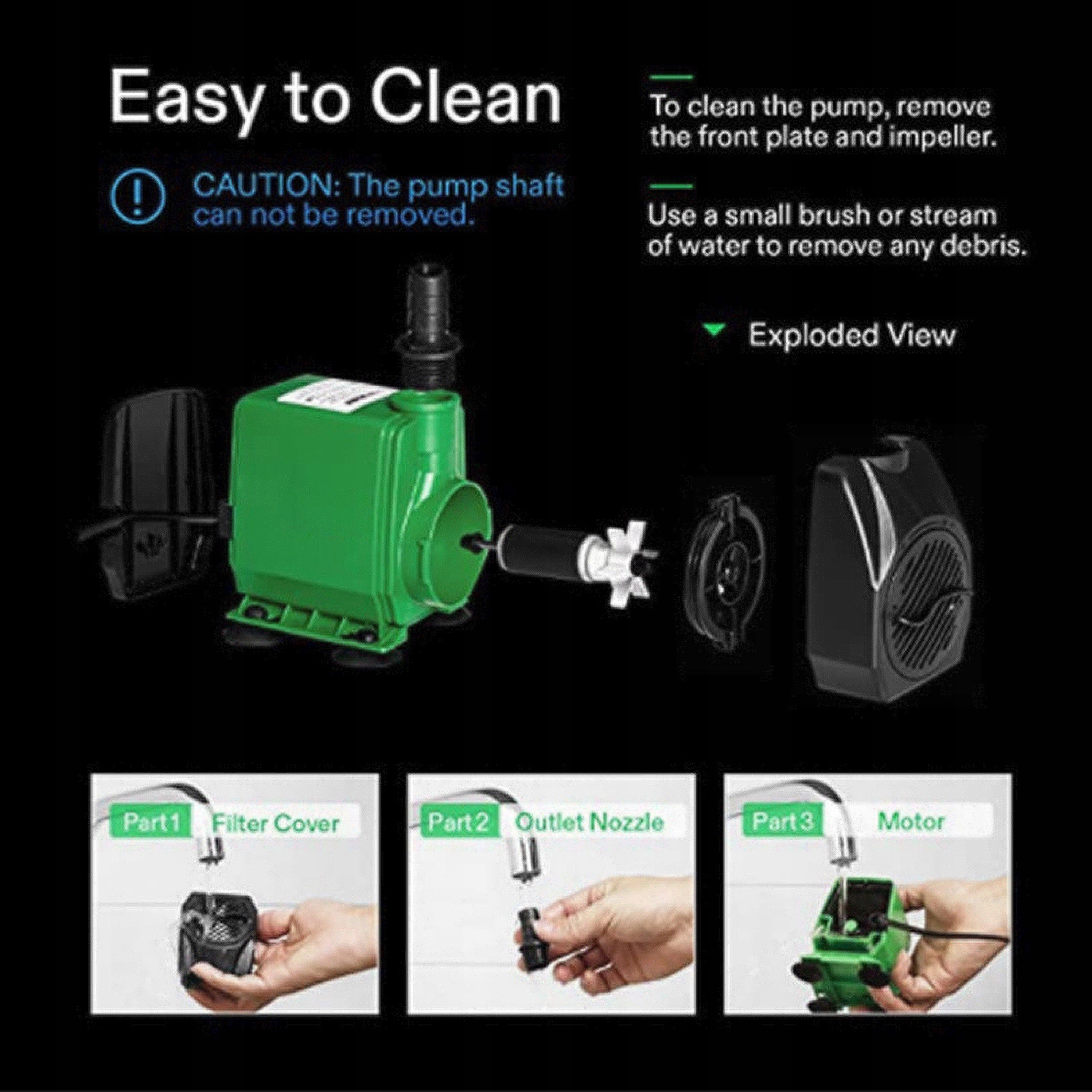 4. Легке видалення та очищення: Цей занурений насос з потужною функцією та компактним розміром легко видалити та очистити, розбирання не потребує інструментів.
