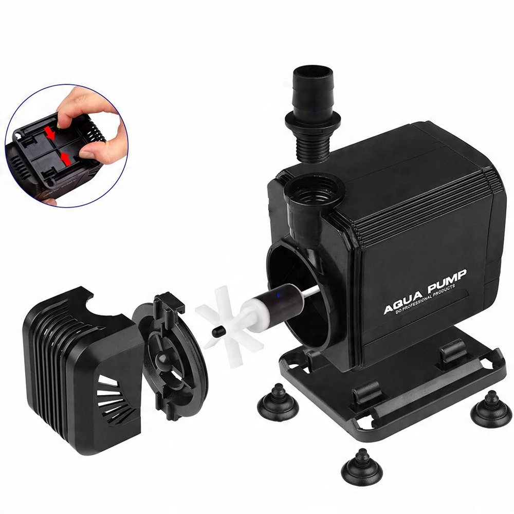 ☑ -якості матеріалу Структура: Наш акваріумний насос складається з міцного пластикового корпусу, керамічного валика з високою міцністю, магнітного ротора насоса та чистого мідного двигуна. Ниткове з'єднання забезпечує стабільність. Він стійкий до корозії і має тривалий термін експлуатації