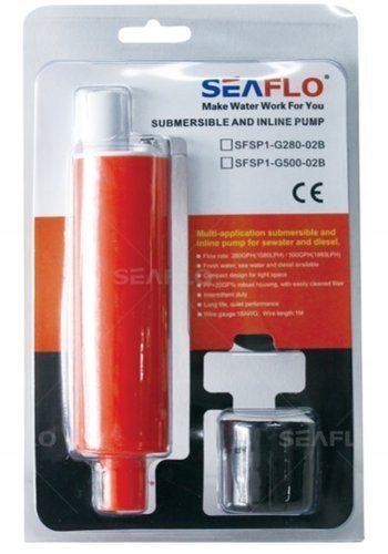 Seaflo SFSP1-G200-03Bце ефективний водяний насос, який можна використовувати як проточний, так і занурювальний. Підходить для прісної та солоної води з температурою до 80 градусів за Цельсієм, з можливістю закачування на висоту до 5 метрів. Розрахований на безперервну роботу протягом приблизно 20 хвилин. Він тихий і дуже міцний. Легко встановлювати, обслуговувати та готувати до зими. Використовується в системах водопостачання на яхтах, у караванах, у лабораторіях, у медицині.
