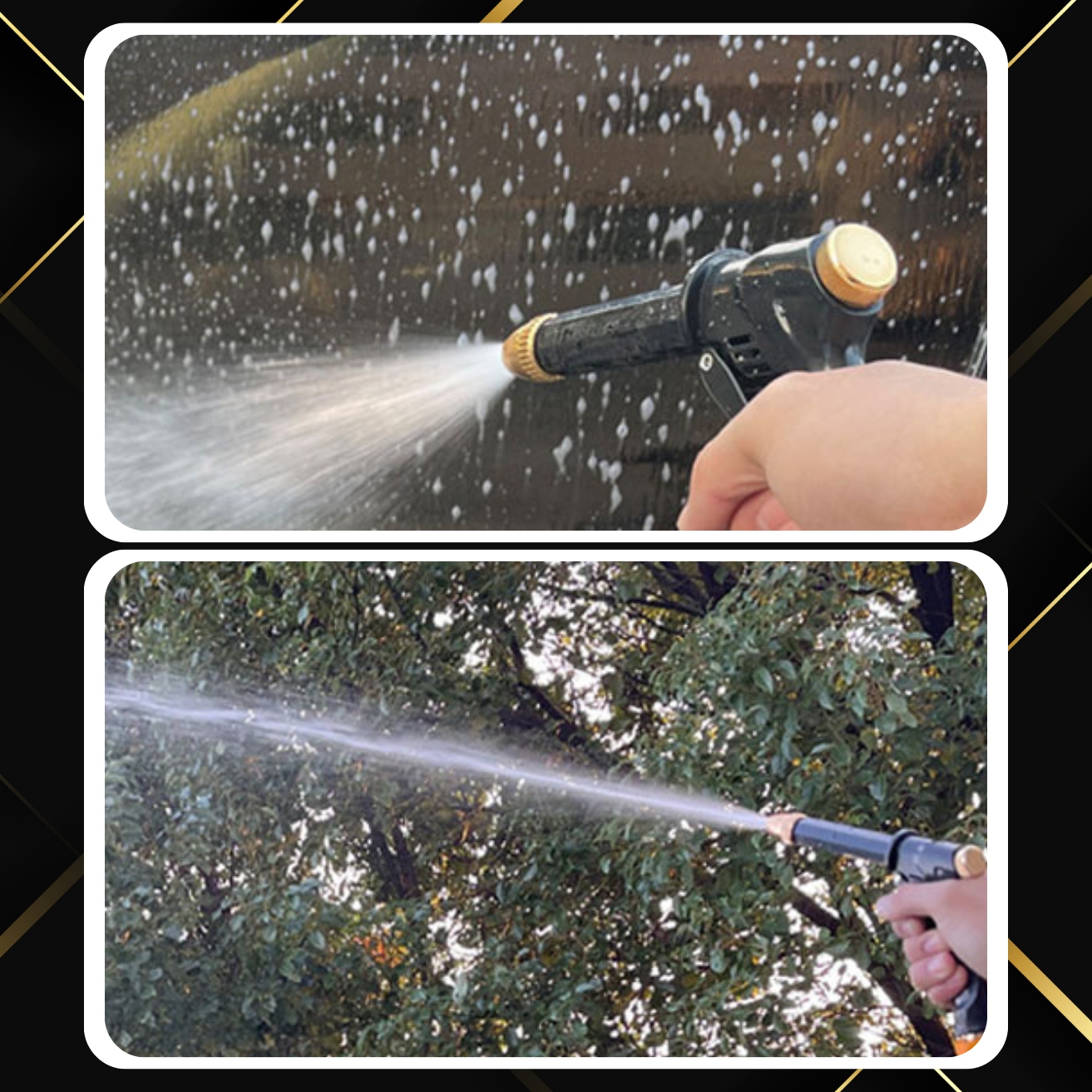 ✔️Ефективність металевої насадки✔️Металева насадка створює сильний струмінь води під високим тиском, що робить пістолет ідеально підходить для видалення бруду з автомобіля та для поливу рослин. їхніх транспортних засобів.