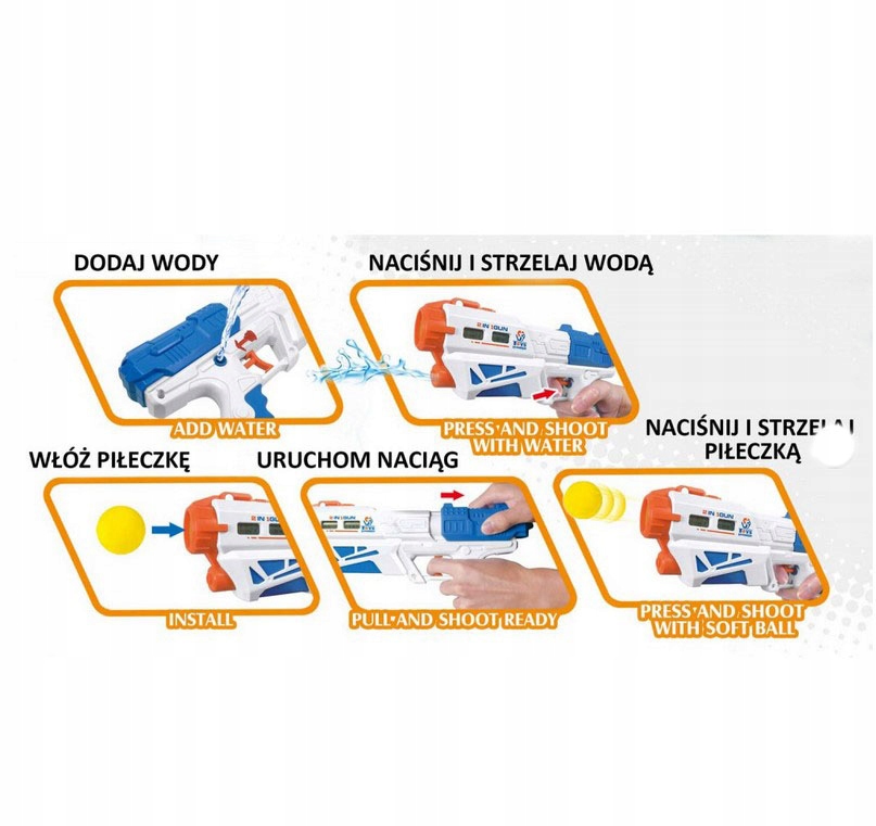 Представлений пістолет для пінопластових патронів і води неодмінно займе маленьких хлопчиків на довгі години, а також дозволить влаштувати багато цікавих ігор за своєю фантазією.