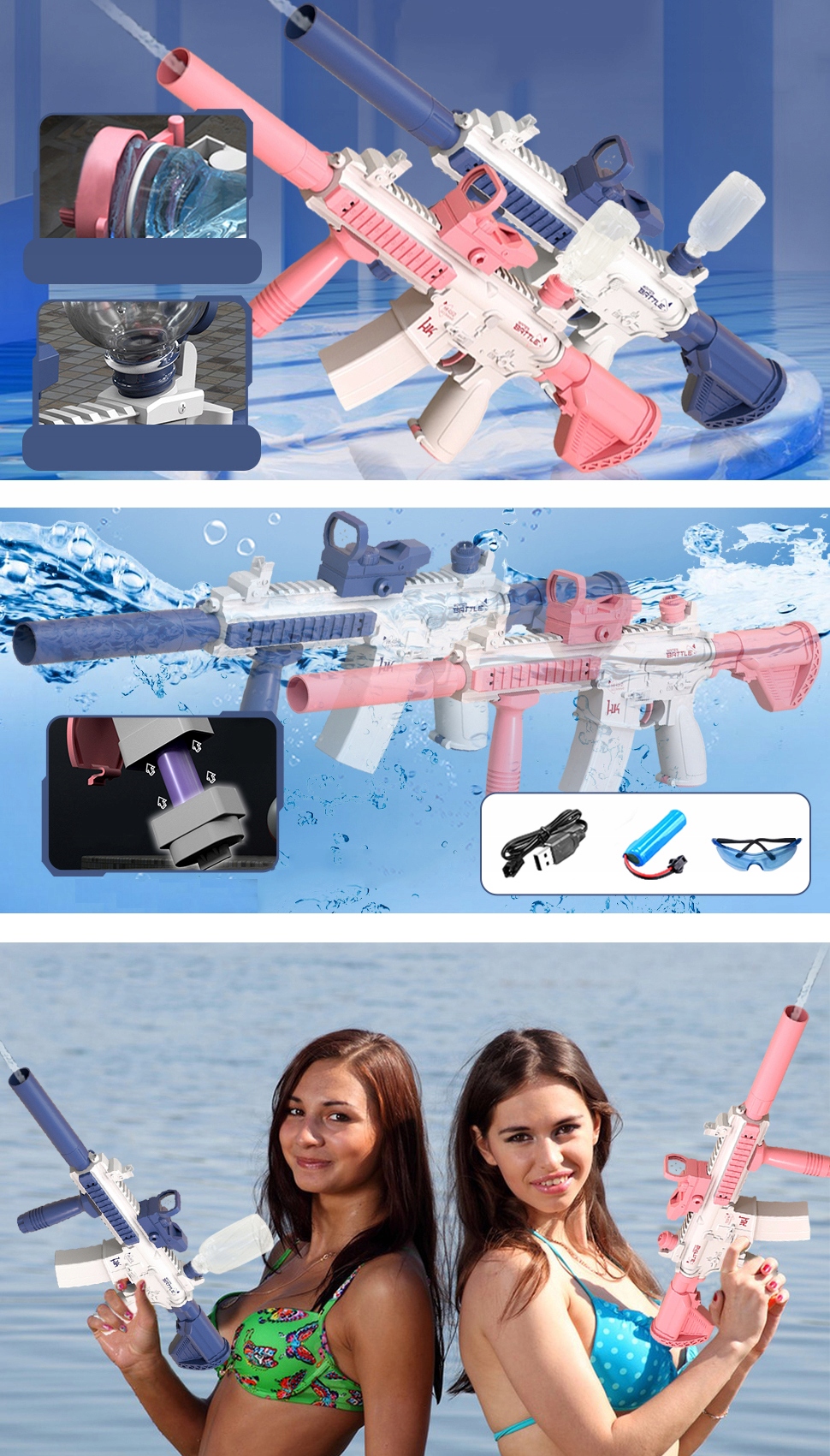 🌟 Цей потужний електричний водяний пістолет виготовлено з високоякісного матеріалу ABS, безпечний і міцний, ідеально підходить для басейнів, патіо, пляжів, вечірок, домашніх розваг і активного відпочинку.