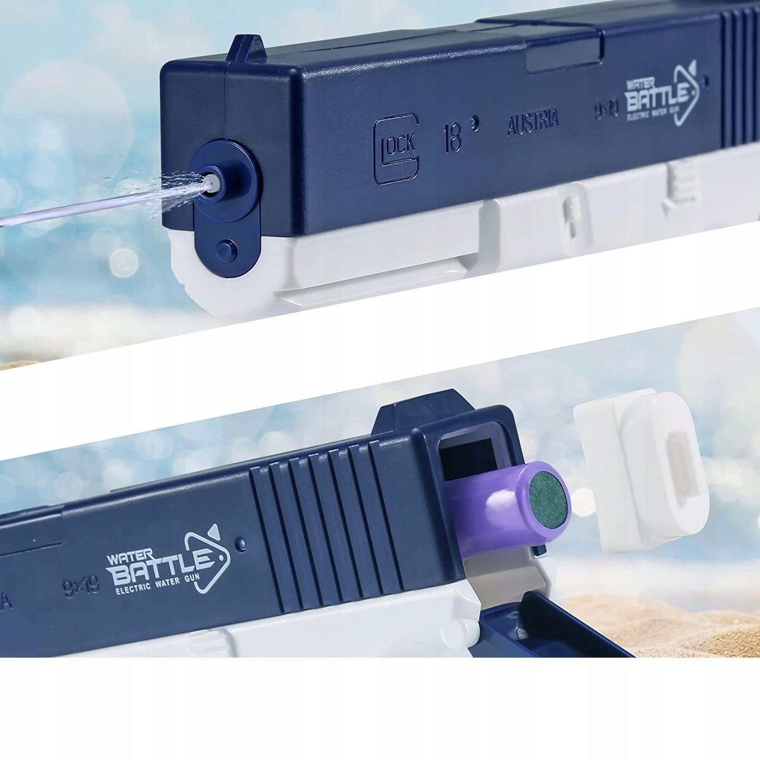 -Акумуляторні батареї для електричних водяних пістолетів підтримують USB-зарядку для постійного використання. Водонепроникний акумуляторний відсік, безпечніший у використанні.
