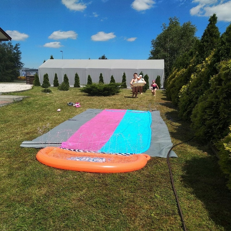 Безсумнівний фаворит для літніх розваг просто неба. Гірка має подвійну доріжку довжиною до 488 см, зрошується за допомогою підключення садового шланга до душових кабін, розташованих у гірці.