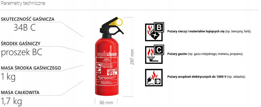- Маса агента пожеж: 1 кг