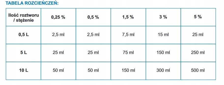 Ефективність: на 1 літр концентрату припадає від 20 до 200 літрів робочого розчину.