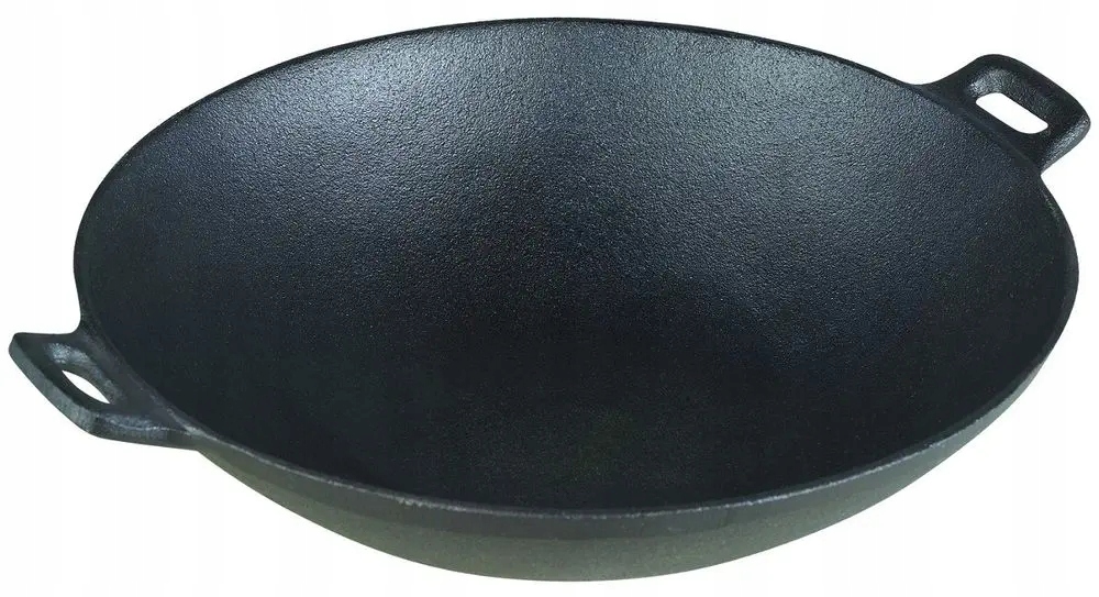 дуже важкий чавун Wok Ø31 см. Чорна поверхня була отримана завдяки унікальному процесу стрільби з чавуну в рослинній олії при дуже високій температурі (окислення). Окислена поверхня знижує сприйнятливість до іржі. Продукт також підходить до всіх типів кухонь, а також індукційних плит.