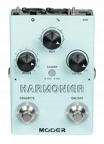 Лівий ножний перемикач можна утримувати, щоб зберегти попередні налаштування ефектів, і натискати, щоб прокручувати 7 попередньо встановлених позицій. Правий ножний перемикач можна натиснути, щоб увімкнути ефекти, натиснути ще раз, щоб ізолювати реверберацію, і утримувати, щоб вимкнути всі ефекти, крім налаштування висоти. На відміну від більшості педалей MOOER, Harmonier підтримує входи та виходи як XLR, так і 1/4".
