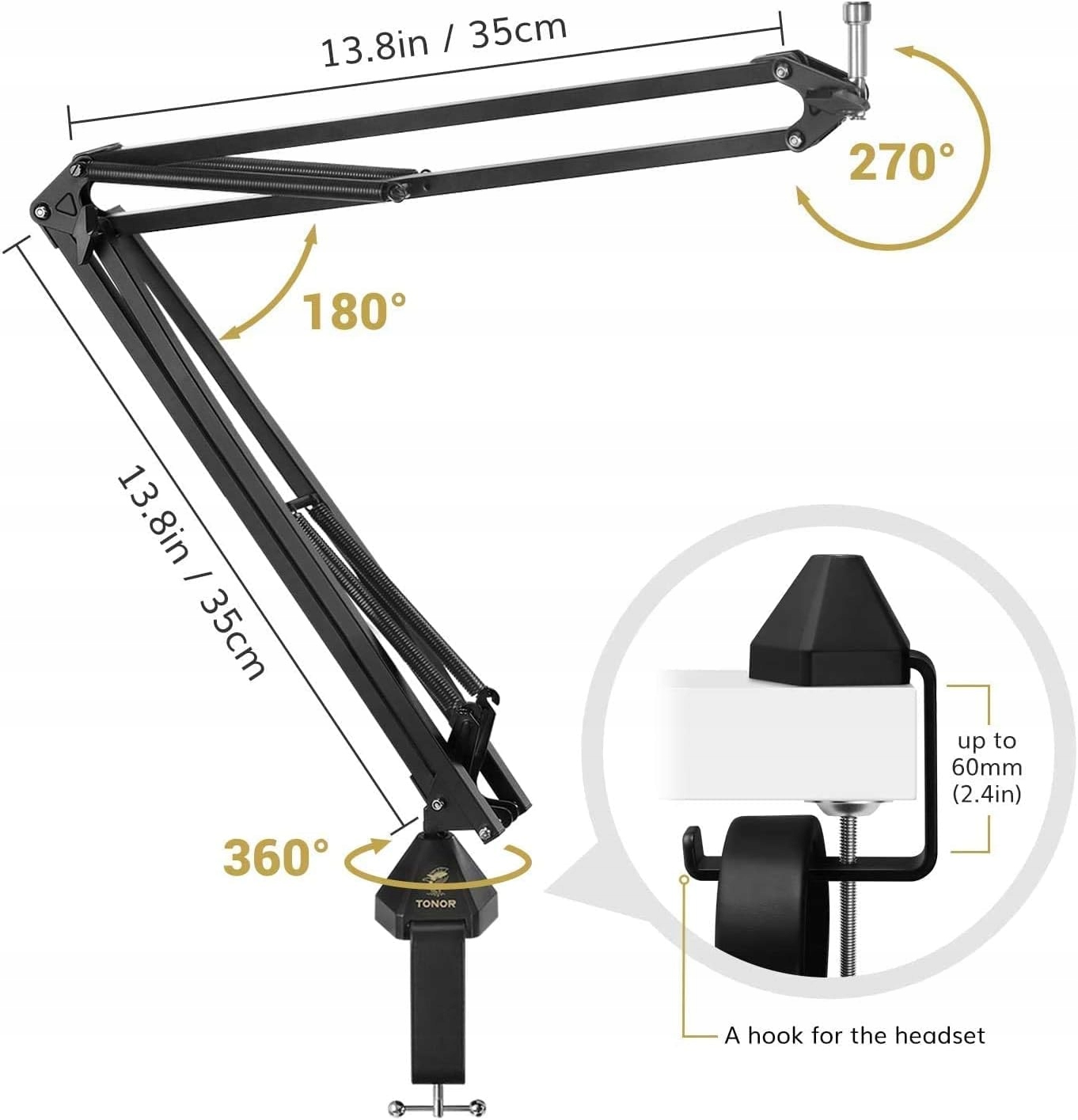- Покращена підставка для мікрофона: TC-2030 виготовлений із міцної сталі та має настільний затискач із учетверо більшою контактною поверхнею. Товщина до 6 см.