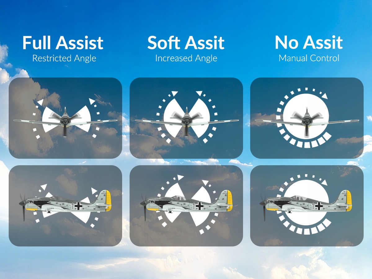 Volantexrc RC Flane FW190 Fighter! Ця модель була розроблена як для початківців, так і для вдосконалених пілотів, пропонуючи 3 рівні підтримки польоту, які дозволяють навчитися літати поетапно. Оснащений гіроскопом Xpilot та ефективною системою приводу з коробкою передач, цей літак надзвичайно стабільний і легко виконує акробатику.