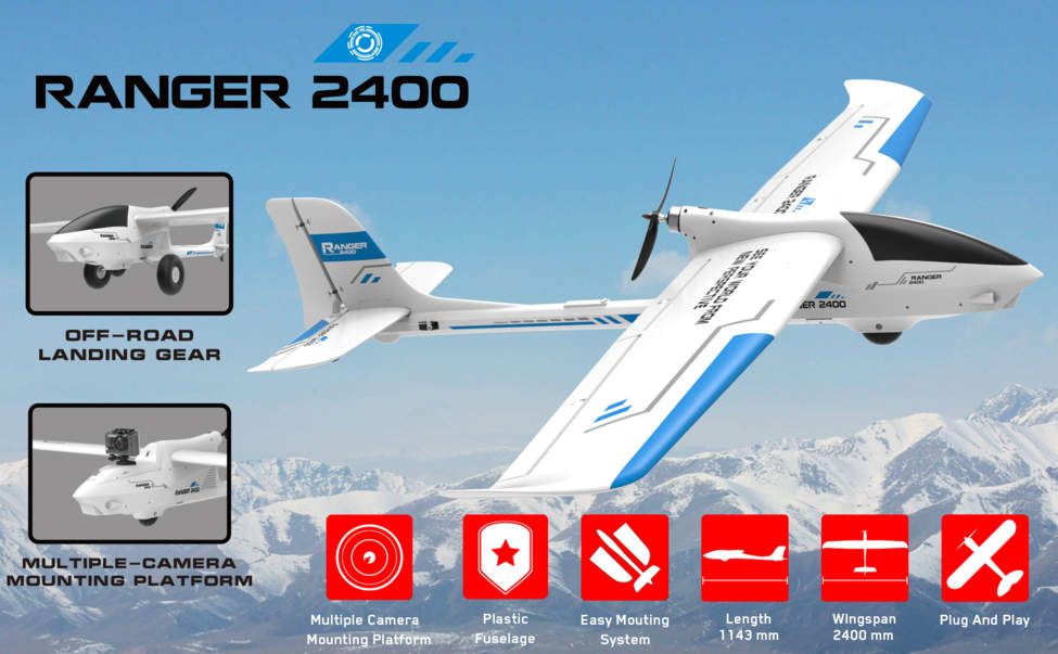 RANGER 2400 FPV / UAV 757-9 – це модель, розроблена VolantexRC. RANGER 2400 був спеціально розроблений для тих, хто думає про FPV/UAV. Великий простір всередині корпусу дозволяє встановити необхідне обладнання. Легка конструкція дозволяє отримувати найкращі аерофотознімки під час високих і тривалих польотів.