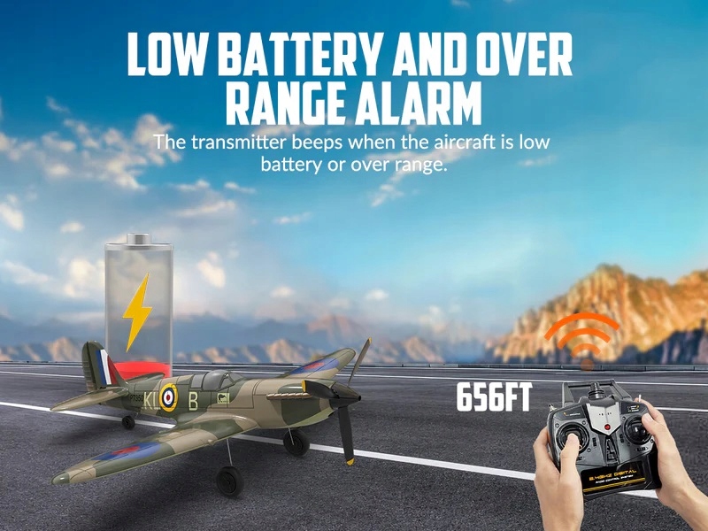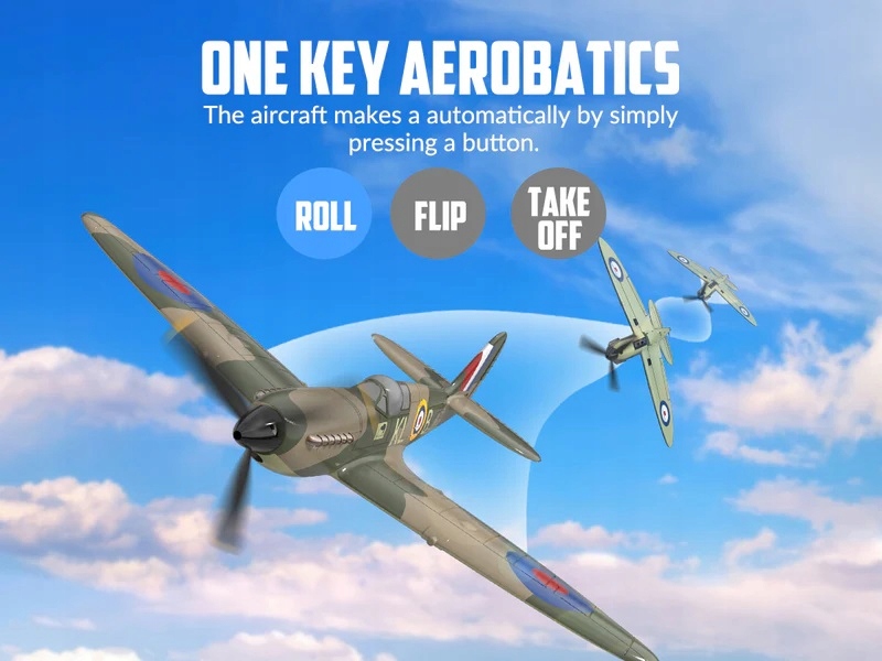 Volantex RC Spitfire F4U 761-12G – невеликий літак із відмінними характеристиками. Завдяки інтегрованій системі стабілізації гіроскопа Xpilot з потужним двигуном літак літає стабільно, спритно і може виконувати акробатичні фігури. Він оснащений функцією акробатики, просто натисніть одну кнопку та потягніть палицю, щоб легко керувати Spitfire та виконувати акробатичні номери. 3-рівневий асистент керування польотом (Full Assist Beginner/Partial Assist Intermediate/Manual Control Expert) допомагає новачкам навчитися літати крок за кроком. Радіус дії апаратури управління становить близько 200 м, час польоту на одному заряді до 10 хвилин.