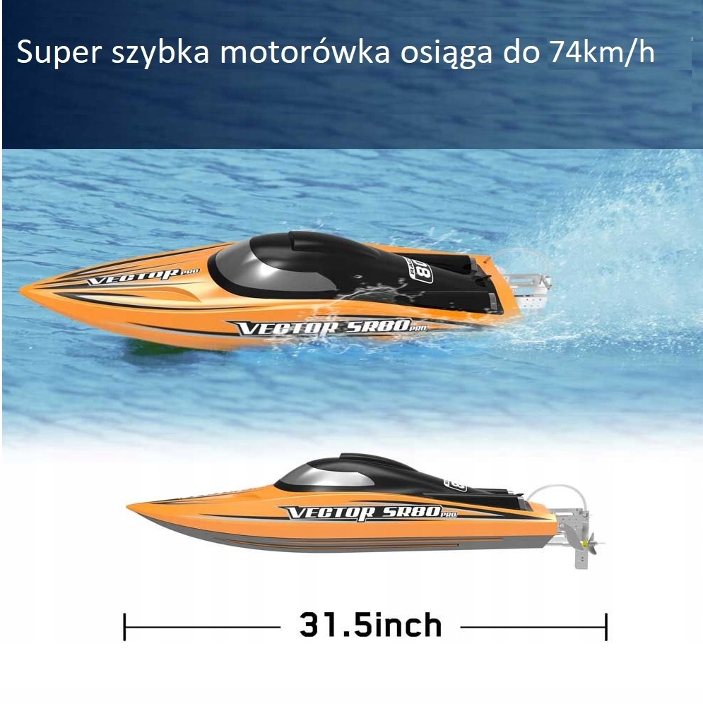 Човен Volantexrc RC Vector SR80Pro розроблено з функцією самореверсу та чудовою системою живлення, максимальна швидкість становить 74 км /год. Vector SR80Pro простий у використанні, підходить для новачків, дітей і дорослих. Обтічна конструкція корпусу забезпечує чудову продуктивність. Спеціальний цілісний корпус із АБС-пластику, міцна конструкція та стійкість до розтріскування запобіжить пошкодженню човна під час удару на високій швидкості, це корабель, який може супроводжувати вас протягом тривалого часу.