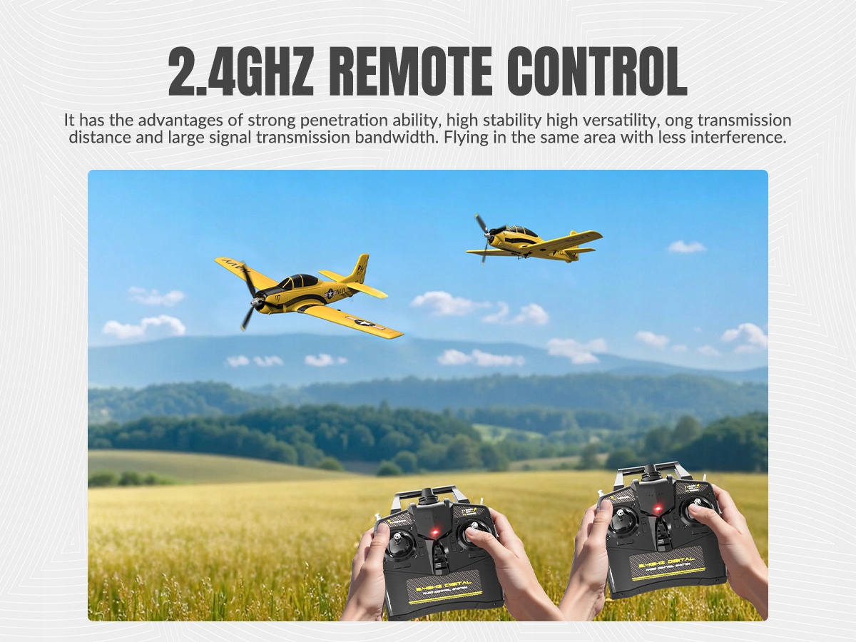 VolantexRC T-28 Trojan 761-9 невеликий літак із відмінними характеристиками. Завдяки інтегрованій системі стабілізації гіроскопа Xpilot з потужним двигуном літак літає стабільно, спритно і може виконувати акробатичні фігури. Він оснащений функцією акробатики, просто натисніть одну кнопку та потягніть палицю, щоб легко керувати MT-28 Trojan та виконувати акробатичні номери. 3-рівневий асистент керування польотом (Full Assist Beginner/Partial Assist Intermediate/Manual Control Expert) допомагає новачкам навчитися літати крок за кроком. Радіус дії апаратури управління становить близько 200 м, час польоту на одному заряді до 15 хвилин.